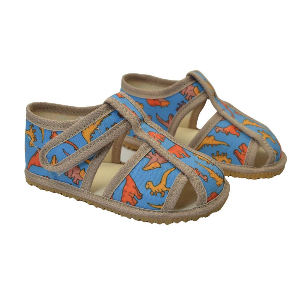 Detské barefoot papučky| SLOVOBUV - DINO - svetlo - modré - uzavreté
