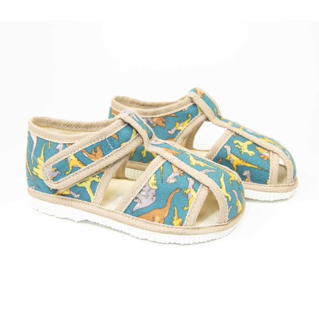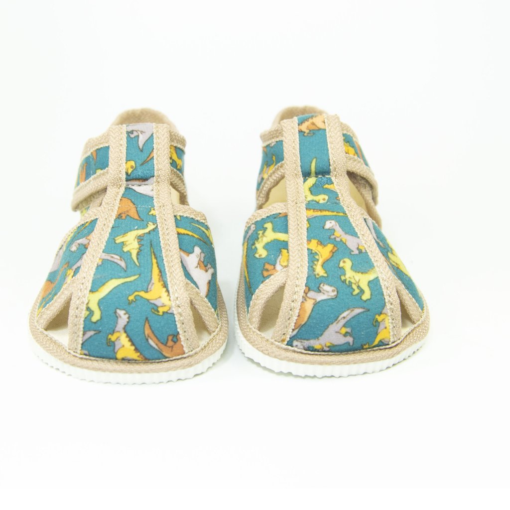 Detské klasické papučky| SLOVOBUV - DINO - zelené - uzavreté